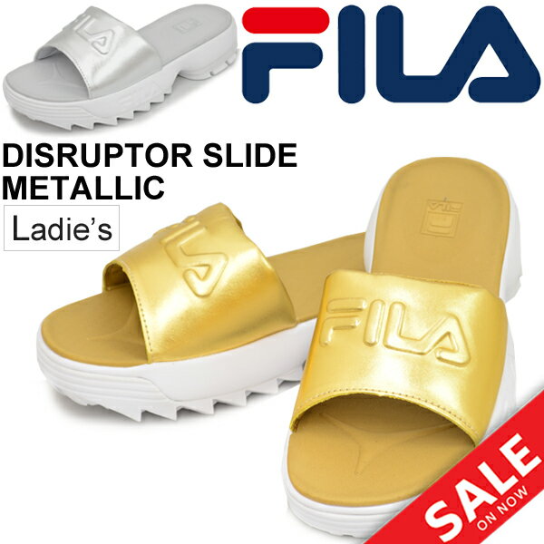 シャワーサンダル 厚底 レディース シューズ フィラ FILA ディスラプター スライド メタリック DISRUPTOR SLIDE METALLIC 女性用 スポーティー カジュアル 派手 ゴールド シルバー 婦人靴 おしゃれ かわいい スポサン 靴/F0368